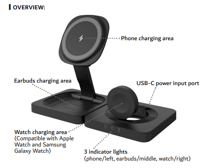 This setup applies to the full ChargeCore 3-in-1 Wireless Foldable Charging Stand.