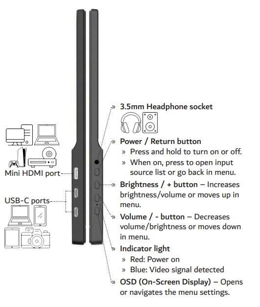 Connect the monitor to a USB-C power adapter (up to 100W).