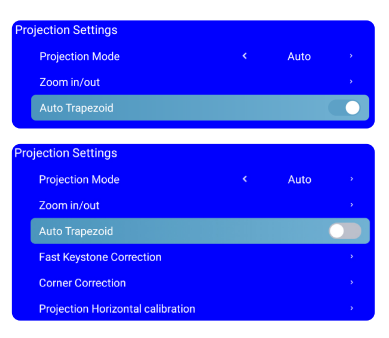 Use the direction buttons to adjust Fast Keystone or Corner Correction.