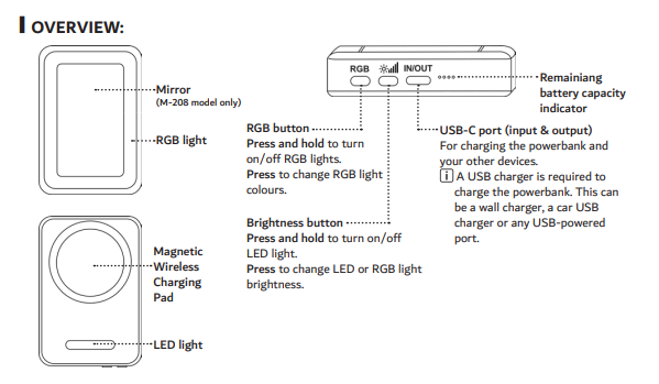The Laser 5000mAh Magnetic Power Bank Mirror RGB (Full Product Name) includes a built in LED light.