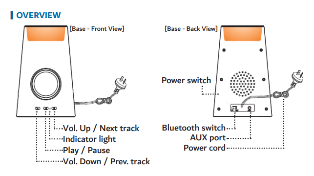 The lamp always starts in Bluetooth mode first. To switch to AUX, unplug and reinsert the cable.
