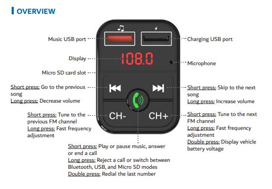 This setup applies to the Laser 5 Button Bluetooth FM Transmitter and Charger.