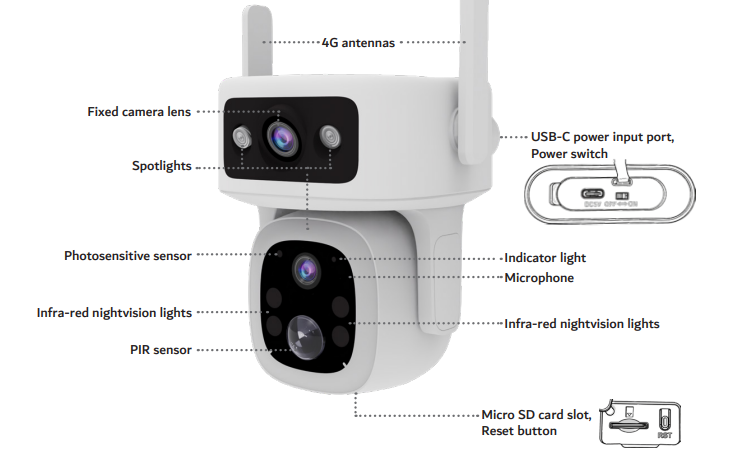 The Laser Smart Home Dual Lens 4G Outdoor camera with solar panel is designed for quick mobile-based setup using QR pairing.