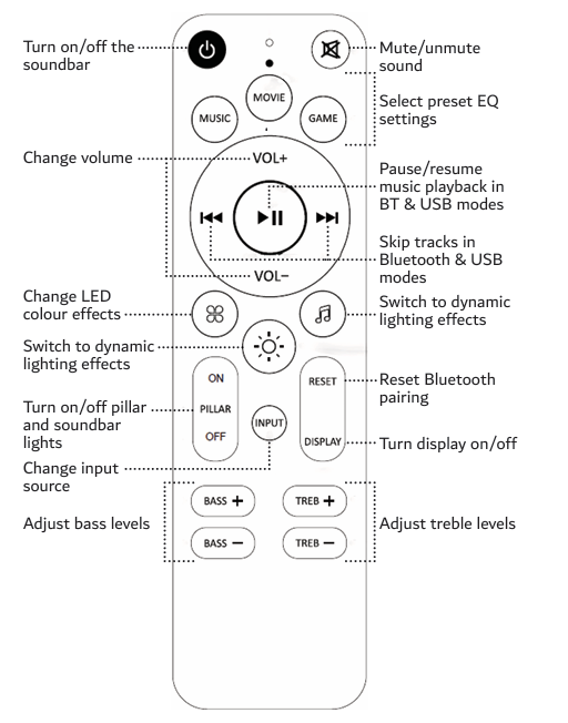 - Plug the power adaptor into the soundbar and then into a wall outlet.