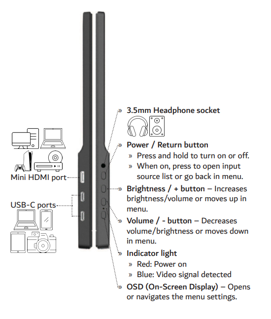 - Connect the USB-C cable between your device and the monitor.
